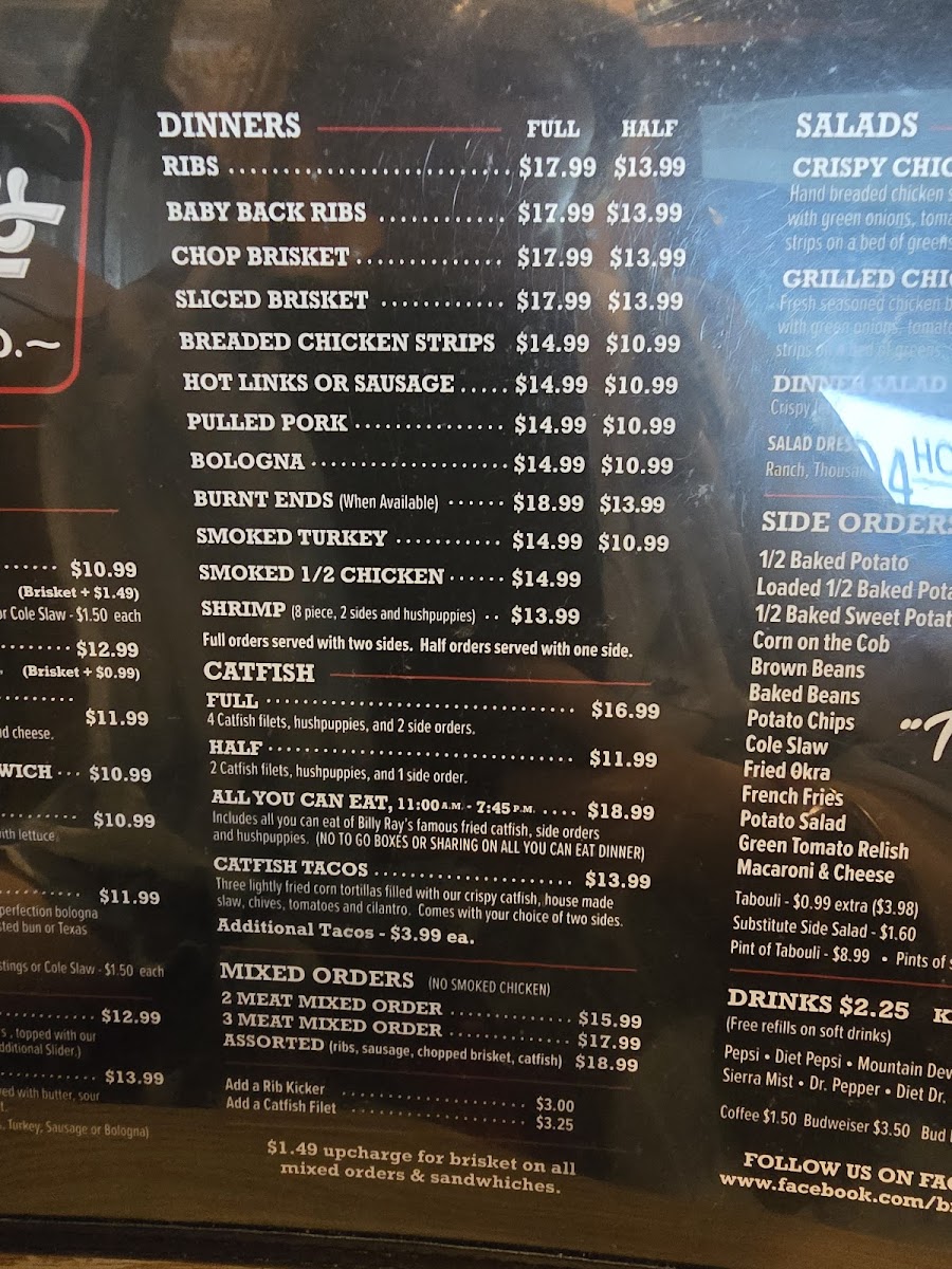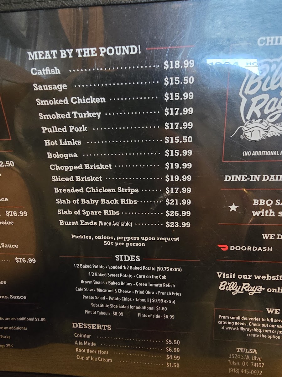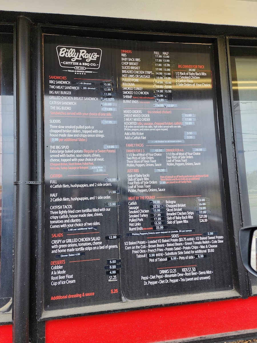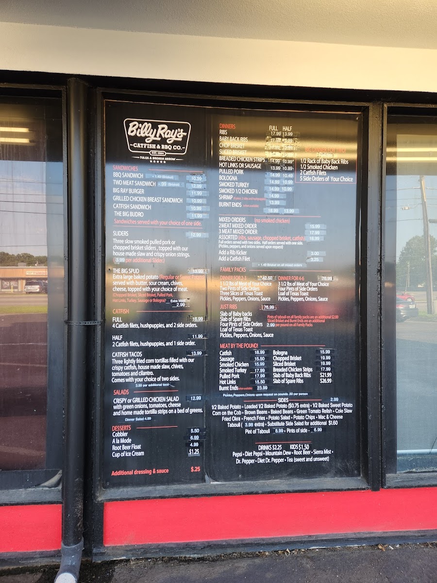 If you're looking for a place that brings bold flavors and a hearty meal, Billy Ray's Catfish & Bbq - Broken Arrow Menu has something for everyone. Nestled at 1904 S Elm Pl in Broken Arrow, this spot is known for its mouth-watering Southern-style catfish and smoky BBQ dishes. Whether you're in the mood for crispy fried catfish, tender pulled pork, or the classic BBQ ribs, Billy Ray's hits all the right notes. The menu features a variety of sides like creamy coleslaw and golden fries to perfectly complement each dish. And don't forget to try their signature sauces that give each bite that extra kick. With a warm and welcoming vibe, it's the perfect spot to enjoy a laid-back meal with family or friends. Whether it's lunch or dinner, this menu guarantees a delicious, satisfying experience every time.